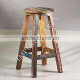 ANTIQUE RECYCLE WOOD ROUND TOP BAR STOOL