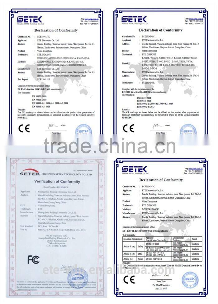 1.Every complete set of intercom contained a unit of indoor monitor,outdoor camera,ten meter cable,
