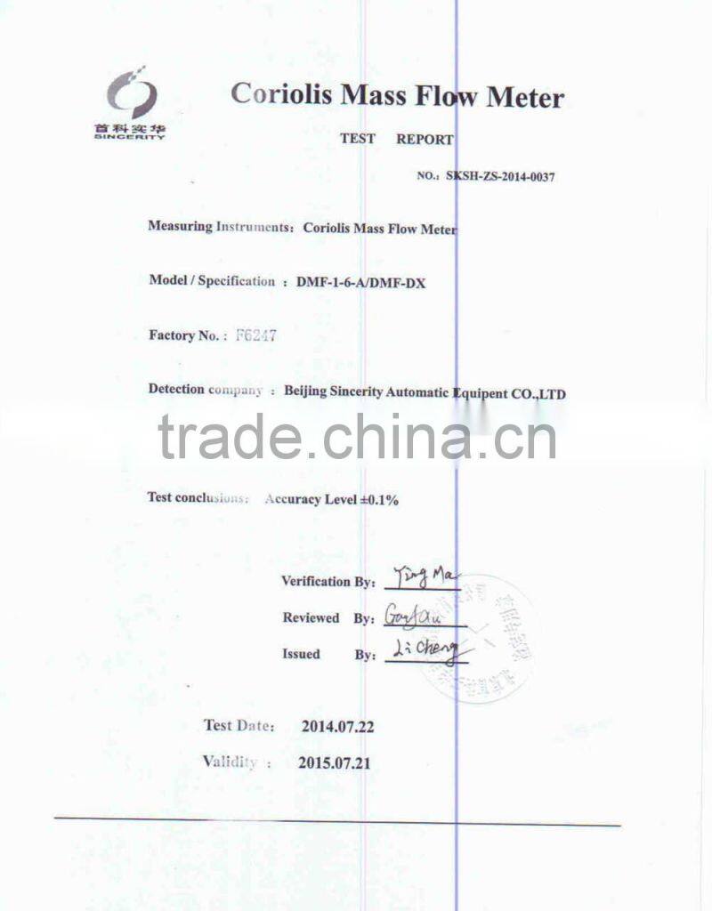 Beijing Sincerity Automatic Equipment Co,. Ltd is a professional manufacturing factory particularly producing mass flow meters and density meters. Our company was reformed from the China Petroleum and Chemical Corporation's Beijing Research Institute of Chemical Industry in 2006. The Coriolis theory based mass flow meter is capable of flowing liquid, gas, and liquid-solid measurement. And measurement data of flow rate, temperature and density can be displayed or transmitted to connected device. Certainly, our mass flow meters also possess the function of controllable flowing quantity setting. Beijing Sincerity Automatic Equipment Co,. Ltd is specialized in designing, machinery installing, preferences adjusting and creating comprehensive analyses for the problems in manufacturing process, especially in the manufacturing industries associated with food, metal, chemical and medical. Suitable advices can be delivered to customers with requests as guaranty. Extreme conditions of measuring object like High/low temperature, high pressure, high viscosity, micro flow, fluctuated temperature and pressure , rapid responding time, and high preference of accuracy will no longer be unsolvable issues to our mass flow meter users. In addition, the Coriolis mass flow meter can be also functioning as a general density meter which does not necessarily require further preference of temperature, viscosity, density, and pressure re-adjustment. The built-in technology of our mass flow meter could be represented as the representative of the 21st centaury mass flow meter. Except the title of expert of fluid measurement, we are also recognized as the expert of automatic control devices. Please do no hesitate to contact us for further info requests, it will be our honor to provide customers the most suitable advices. We are gladful to guarantee our users deserving the most satisfied service.