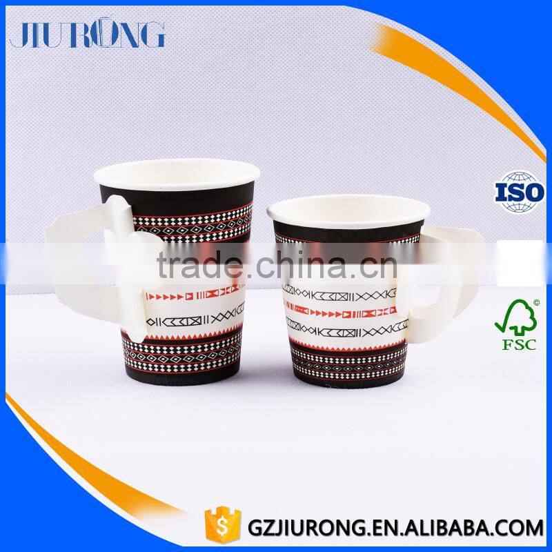 Can design with handle.single wall paper cup with handle have the follows size available:7oz,9oz