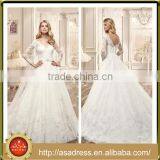 VDN44 Elegant Sheer Back Wedding Bridal Party Gown 2016 Floor Length Long Soft A Line Appliqued Wedding Dresses With Sleeves