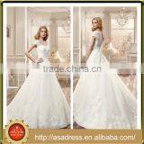 VDN36 Sexy Mermaid Crepe Bridal Appliqued Gown 2016 Full Length Lace Backless Wedding Dresses With Cap Sleeve for Weddings