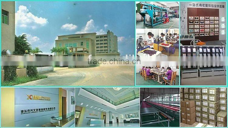 A:For bra rings and sliders,our MOQ is 2000pcs/item.For other bra buckles,alloy ornaments,metal boning and underwire,our MOQ is 5000pcs/item.For the cloth products,our usually MOQ is 10000pairs.