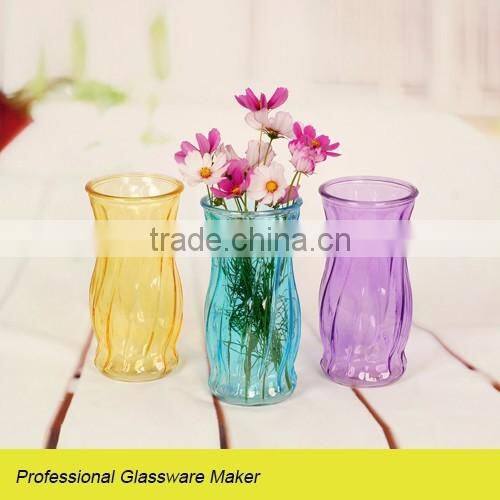 Hot Sale Glass Vase With Color Colored Glass Vase With Embossment