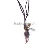 Vintage Genuine Leather Necklace With Antique Siliver Angel Wing Pendant.