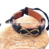 Genuine Leather Bracelet With Antique Brass Simple "8" Accessory.