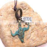 Vintage Genuine Leather Necklace With Bronze Green Hollow Bull Head Pendant.