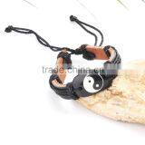 Genuine Leather Bracelet With Chinese Traditional Yin and Yang Fish Diagram Painted Leather Accessory.
