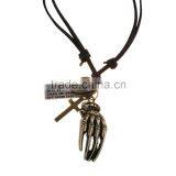 Vintage Genuine Leather Necklace With Antique Brass Hand Pendant.