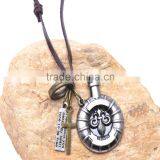 Vintage Genuine Leather Necklace With Antique Sliver Wine Bottle Pendant.