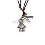 Vintage Genuine Leather Necklace With Antique Sliver TeddyBear Pendant.