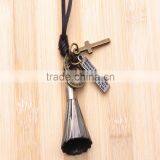 Vintage Genuine Leather Necklace With Antique Sliver Whistle Pendant.