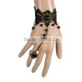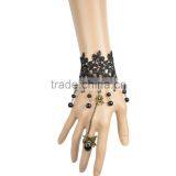 Lolita Charm Women Black Lace Bracelet With Round Shape Rhinestone Alloy Chain Ring