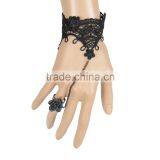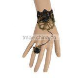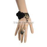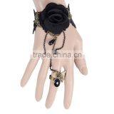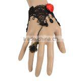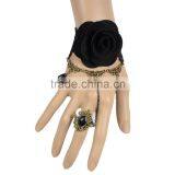 Delicate Rose Flower Women Black Lace Bracelet With Copper Alloy Chain Ring