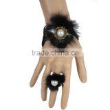 Charm Women Black Lace Bracelet With Fur Inlay Pearl Ring for Girl Gift