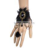 Exaggerate Black Fur Women Lace Bracelet Ellipse Rhinestone Tassel With Ring