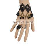 Charming Design Women Black Lace Bracelet Teardrop Copper Alloy Chain Ring