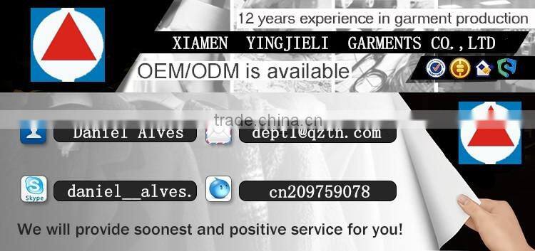 We are a professional manufacturer.We are specializing in this field of apparel for 8 years.We are experienced in servicing US market,European market,Canada market,Africa market,and South America.We were the supplier of WAL-MART, Carrefour.Please be aware that Our price competitive,because we are the manufacturer.Our products with hight quality and popular design.That why our products are best selling.If you place an order with us,we will try our best to meet your demand.