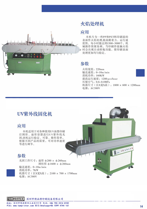 - Main products: UV curing machine, printing dryer, Screen printing machine, UV exposure machine, re mesh tighten stretching machine, Screen stencil drying oven, IR drying tunnel conveyer, Gold glitter powder auto screen printing machines, hot melt glue automatic screen printing machine
