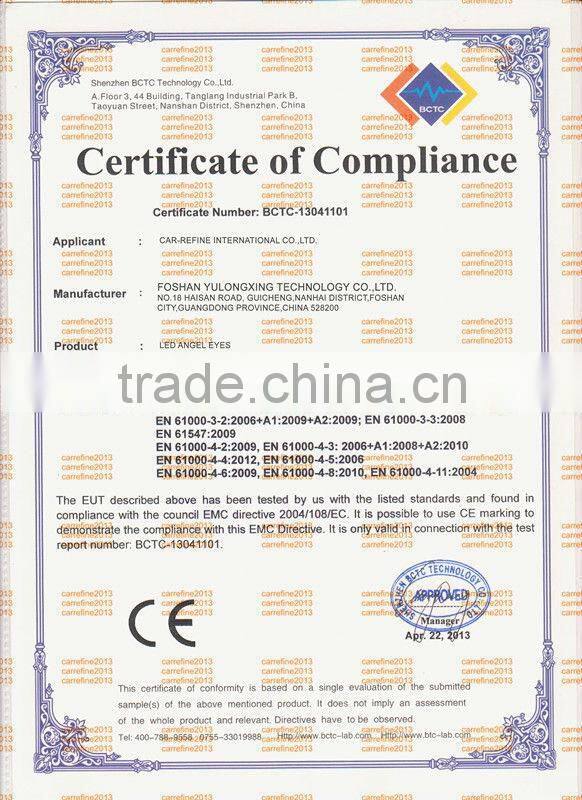 Our company, Foshan YULONG XING TECHNOLOGY CO., LTD. (Car-refine International Co., Ltd.) was established in 2004. With the related 10 years experiences, we have reached a marvelous level among our competitors. And now we become one of the leading manufacturers and suppliers for automobile lighting business in the world. Our main production line is focused on auto led lighting, led fog lamp, led fog light bulb, car led fog light, ba15s 12smd 5630 led car fog lamp, etc.