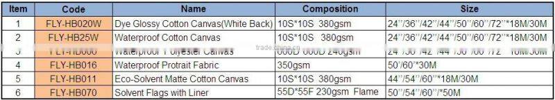 FLY China Leading Supplier Waterproof Printing Canvas Fabric, Digital Printing Canvas Roll