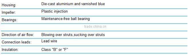 The AC axial fan consists of metal tubular vent ,inner or external rotor AC induction motor and plastic or metal impeller,which has the following feature : large air flow ,low noise and vibration,high reliability ,easy mounting and long life-time etc.