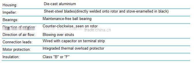 Note: The typical specifications below are just for your reference. Axial fans' voltage ,frequency, speed ,direction of rotor ,direction of air flow and insulation class can be customized. Please feel free to contact us if you can’t find the motor you required. We are always here being ready to help.