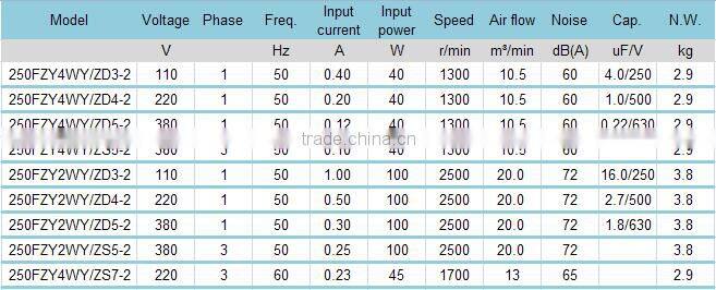 | Model Number | 250FZY4WY/ZS5-2-industrial ventilation fan | Voltage | 380V | |