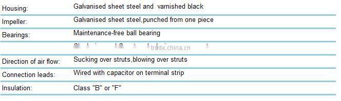 The AC axial fan consists of metal tubular vent ,inner or external rotor AC induction motor and plastic or metal impeller,which has the following feature : large air flow ,low noise and vibration,high reliability ,easy mounting and long life-time etc.