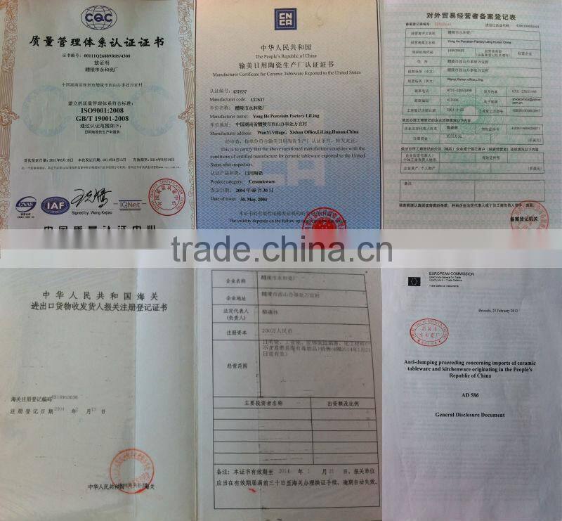Liling Yonghe Ceramic/Porcelain Factory is a professional manufacturer which is specialized in producing and exporting all kinds of ceramic coffee mugs,tea cup, bowl ,cup&saucer more than 20 years .We own monthly production capacity of 1.5 million pieces, which can provide our customers with advanced production lines, high-quality products, competitive prices and quality service.