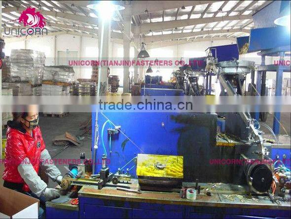 Established in 1998, Unicorn (Tianjin) Fasteners Co., Ltd. Located at the economic development area of Jinghai which is about 50 kilometers far from Tianjin airport and 80 kilometers to Tianjin Xingang port. This location offers us convenient transportation and abundant labour resources. Company covers 27000 square meters, with the building area of 18000 square meters.In 2006, several advanced equipments were introduced from Germany and put into production in 2007. We select stainless steel, copper, zinc and other raw materials with high grade form all over the country. Our company in strict accordance with the ISO 9001:2000 quality standard for the production, product quality in the industry is far ahead. Main products are: fine wire staples, medium wire staples, heavy wire staples, office staples, hammer tacker, F brads, T brads, headless pins, ND brads, DT brads, angle DA brad nails, paper strip nails, wire band with various colors, galvanized wire, and special fasteners, such as, carton closing staple, hog-ring, corrugated nails, ST-64 steel strip nails, and plastic strip nails. We have established good business relations with SENCO, BeA, PASLODE,PREBENA and win great reputation in the international market. Currently, our staples,finish nails, brads nails, galvanized wire and wire bands are exported to Germany, Poland, Russia, Canada, America as well as other parts of the world. Meanwhile, we are rich in outstanding talents. Sales staff are at least with bachelor degree or above in place to offer you the best services. We are looking forward to bridge the business relationship with all of our esteemed customers. If you need more details please visit our website as follow: www.unicorn-fasteners.com