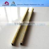 Established in 1998, Unicorn (Tianjin) Fasteners Co., Ltd. Located at the economic development area of Jinghai which is about 50 kilometers far from Tianjin airport and 80 kilometers to Tianjin Xingang port. This location offers us convenient transportation and abundant labour resources. Company covers 27000 square meters, with the building area of 18000 square meters.In 2006, several advanced equipments were introduced from Germany and put into production in 2007. We select stainless steel, copper, zinc and other raw materials with high grade form all over the country. Our company in strict accordance with the ISO 9001:2000 quality standard for the production, product quality in the industry is far ahead. Main products are: fine wire staples, medium wire staples, heavy wire staples, office staples, hammer tacker, F brads, T brads, headless pins, ND brads, DT brads, angle DA brad nails, paper strip nails, wire band with various colors, galvanized wire, and special fasteners, such as, carton closing staple, hog-ring, corrugated nails, ST-64 steel strip nails, and plastic strip nails. We have established good business relations with SENCO, BeA, PASLODE,PREBENA and win great reputation in the international market. Currently, our staples,finish nails, brads nails, galvanized wire and wire bands are exported to Germany, Poland, Russia, Canada, America as well as other parts of the world. Meanwhile, we are rich in outstanding talents. Sales staff are at least with bachelor degree or above in place to offer you the best services. We are looking forward to bridge the business relationship with all of our esteemed customers. If you need more details please visit our website as follow: www.unicorn-fasteners.com