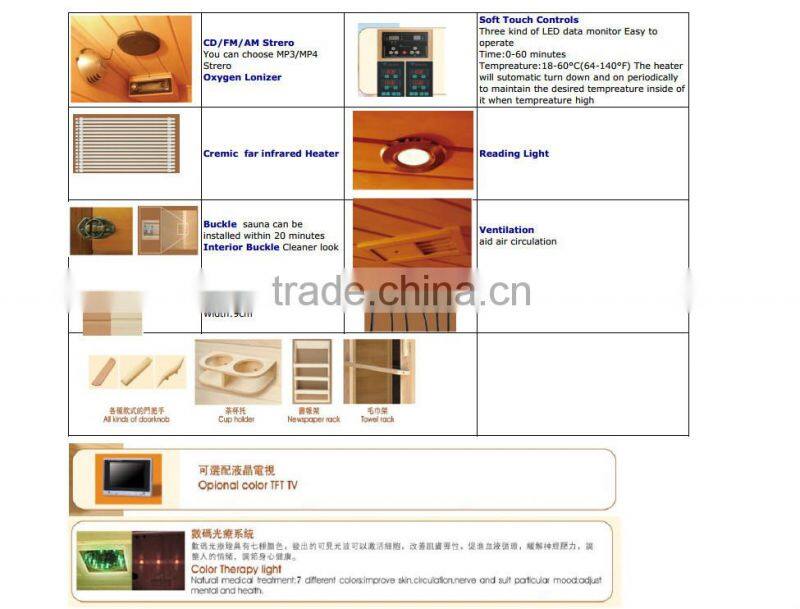 Hemlock Material Indoor Far Infrared Cremic Heater Sauna Room