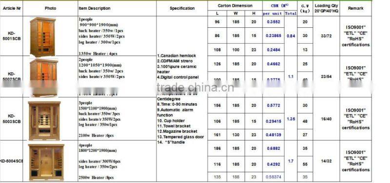 2015 Best Selling Infrared Sauna Cabin KD-5002SCB