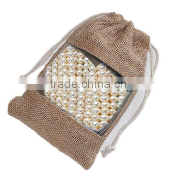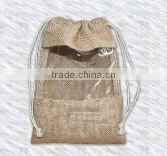 Home > Products > Jute Pouch > Jute Burlap Gift Pouch, Jute Drawstring Bag With Transparent PVC Window