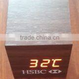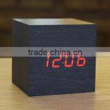 2016 Hot Sale Fashion Home Decor Led Wood Clock Portable Cube Led Alarm Clock With Thermometer/USB