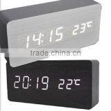 Hot Sale Cheap Sound Control Sensor Led Wood Wooden Digital Alarm Clock With Date Temperature