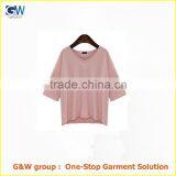 Solid Color V-neck T-shirt Great Wild Girl's NEW Style Solid Color V-neck T-shirt