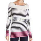 2015 Lastest Longest Sleeve Color Split Slant Pockets Boat Neck Shirt