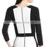 Black and White Match Deep v Neck up to Knee Long Sleeve Career Dress