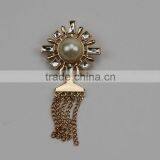 Metal Zinc Gold Brooches Pin With Rhinestone and White Pearl