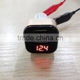 White and Silver LED Display Voltage and Current Dual USB Car Charger