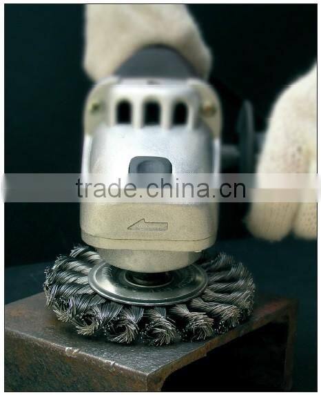 • wheel twisted wire brush: intended for labor-consuming applications such as removal of thick layers of rust and paint