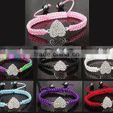 Crystal Heart Friendship Bracelets Colour Cord Silver Base