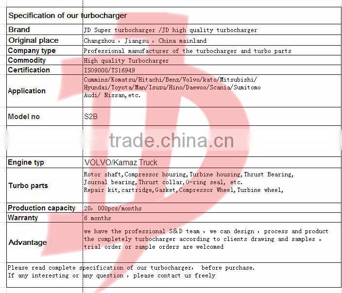 We supply turbocharger and turbocharger parts(Chra ,Rotor assembly,bearing housing ,turbine housing ,compressor housing repair kit and so on)