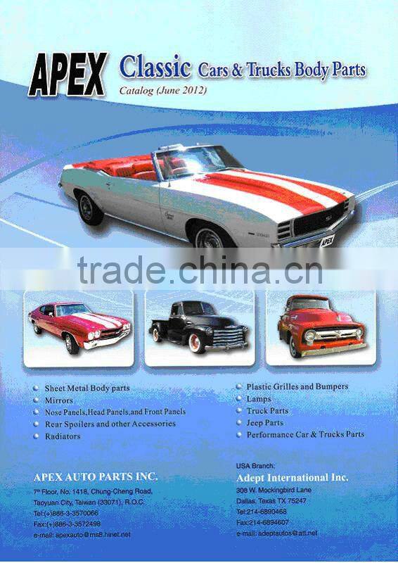 APEX AUTO PARTS INC., is a leading and professional auto spare parts' manufacturer and exporter in Taiwan, since 1984. Please be informed that we were composed by different stamping and tooling factories in making auto parts, molds or tools for popular car or truck around the world. Also, we established a branch office and warehouse in Dallas (U.S.A) to service our valued customers in North America.We have a special parts research and developing department to making the tools or parts for those old/ classic cars that are very difficult to find from markets.
