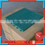 Suspended modular interlock plastic flooring originated from USA, Which is very popular after stone, wood, PVC etc. It can be widely used in: Tennis court, basketball court, indoor futsal court, amusement Park, playground, parking court, corridor, and gymnasium etc. Its superexcellent sports performance and other advantages were proofed in many kinds of international games.