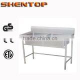 Shentop 2015 Commercial Kitchen Stainless Steel Sink Double Rinse Table With Drainer STXS-02 Double Sink Table