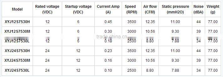 XYJ7530 12V 24V High Pressure Air Blower Fan 75*74*30mm