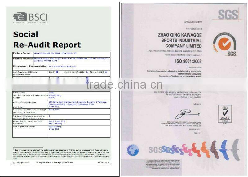 We are a professional ball factory. Our products range are: Soccer ball, Volleyballs , Basketballs, all kinds of Rubber balls, Tennis/badmintion rackets , shuttlecock , and small fitness equipments etc. We have a professional R&D Team and present a series of outstanding new designs to customers every year ! |